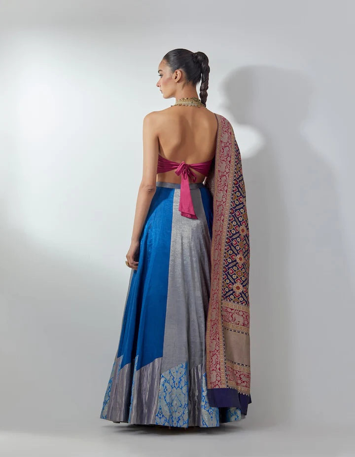 Blue Metallic Lehenga Set