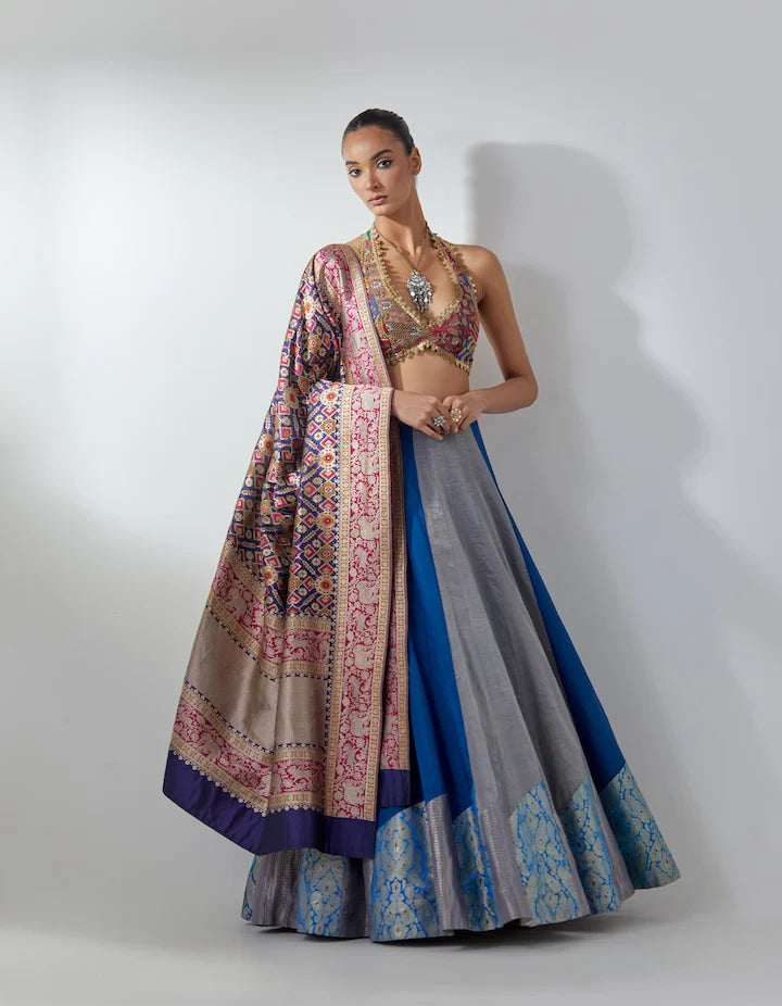 Blue Metallic Lehenga Set