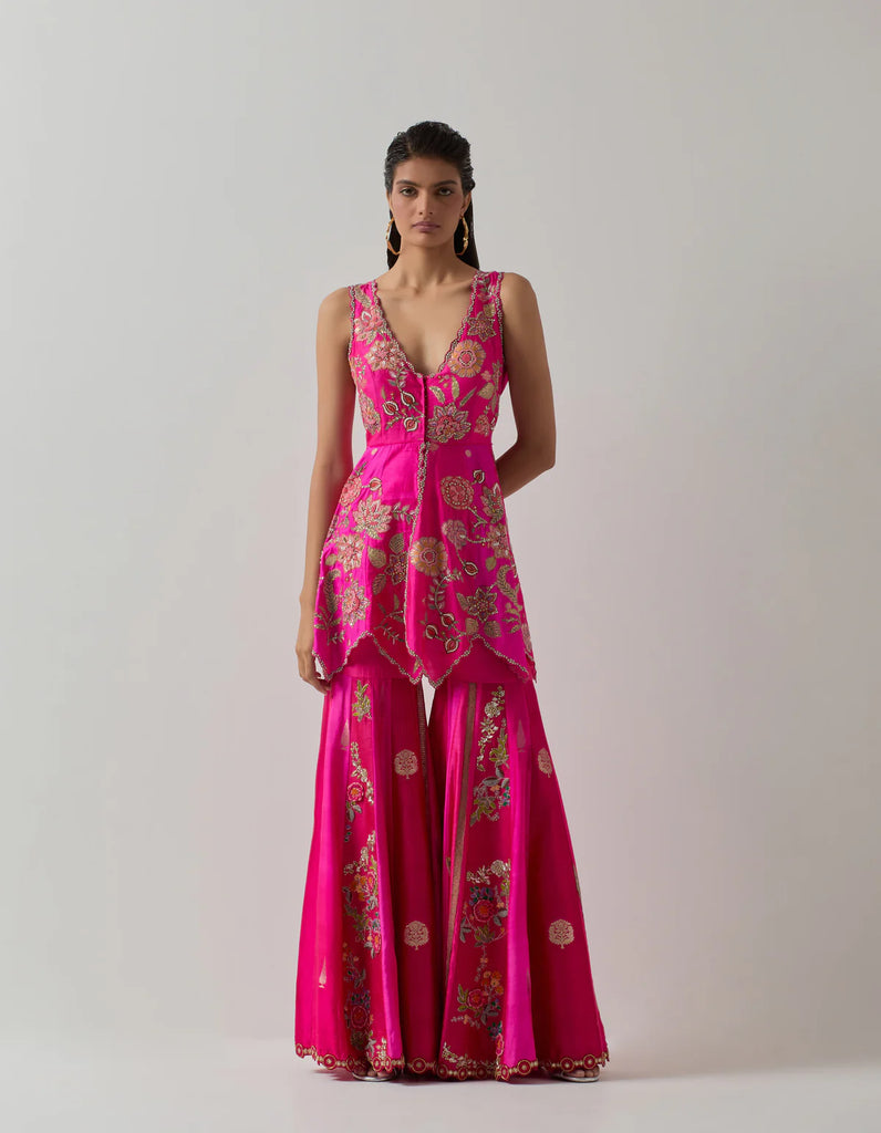 Fuchsia Peplum Sharara Set