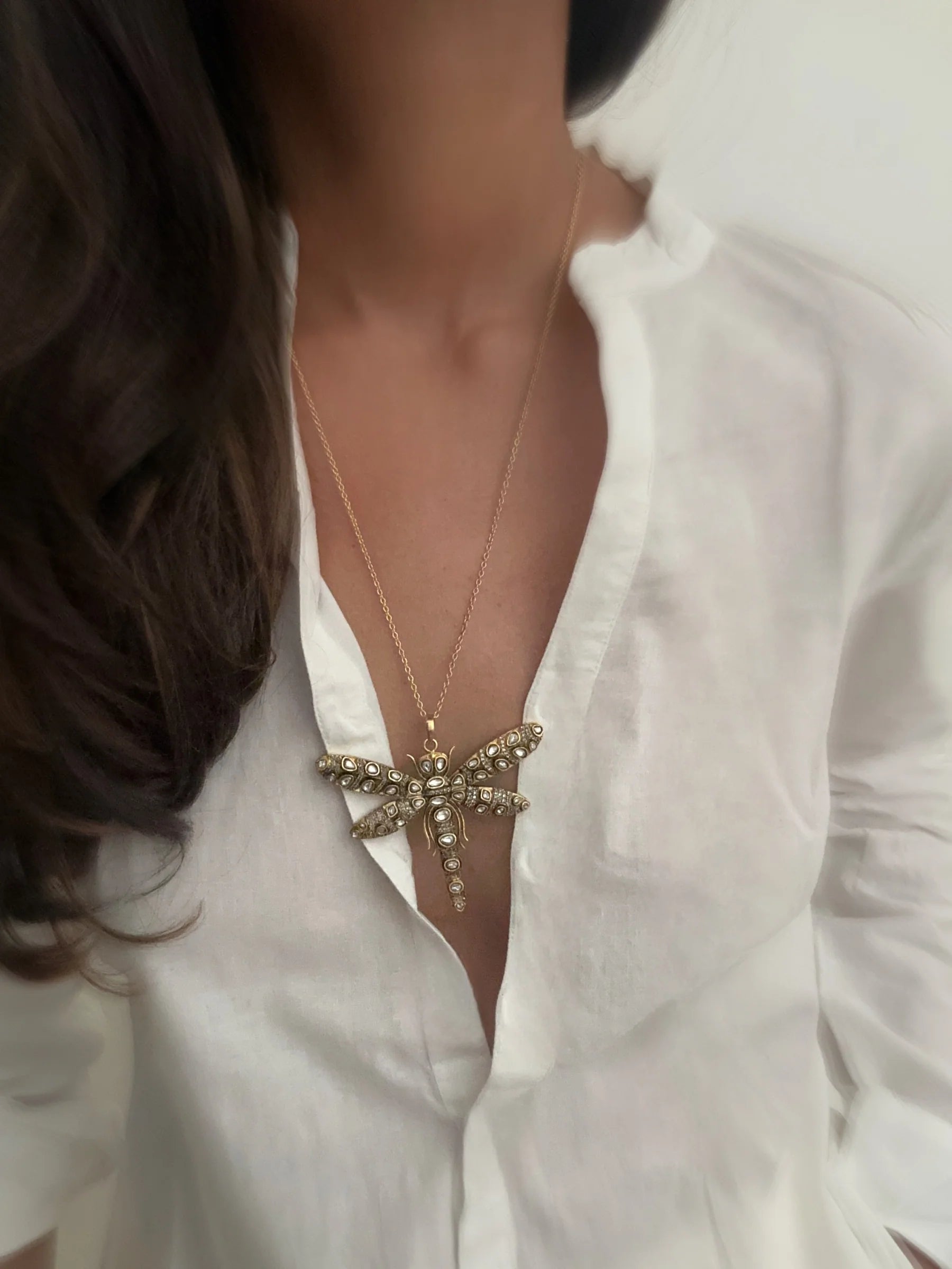 The Dragonfly polki necklace is meticulously crafted using silver alloy. It includes a 24-inch long chain for a complete look.