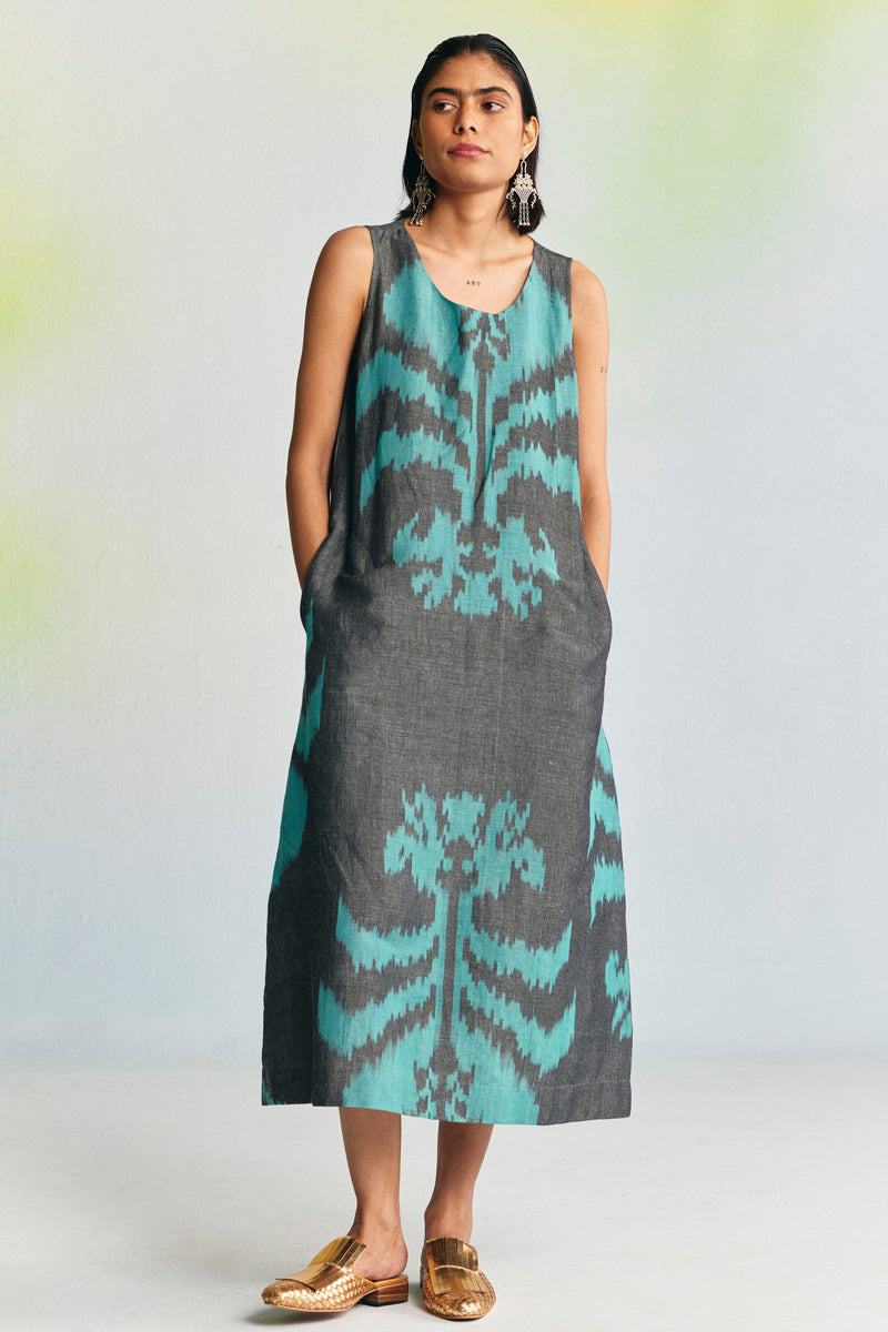 The sleeveless dress features: