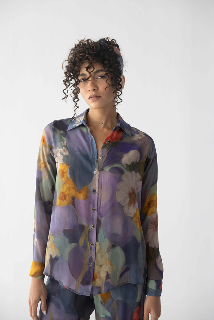 The loose-fitted shirt, meticulously crafted in breathable crepe, exudes a relaxed yet refined appeal.