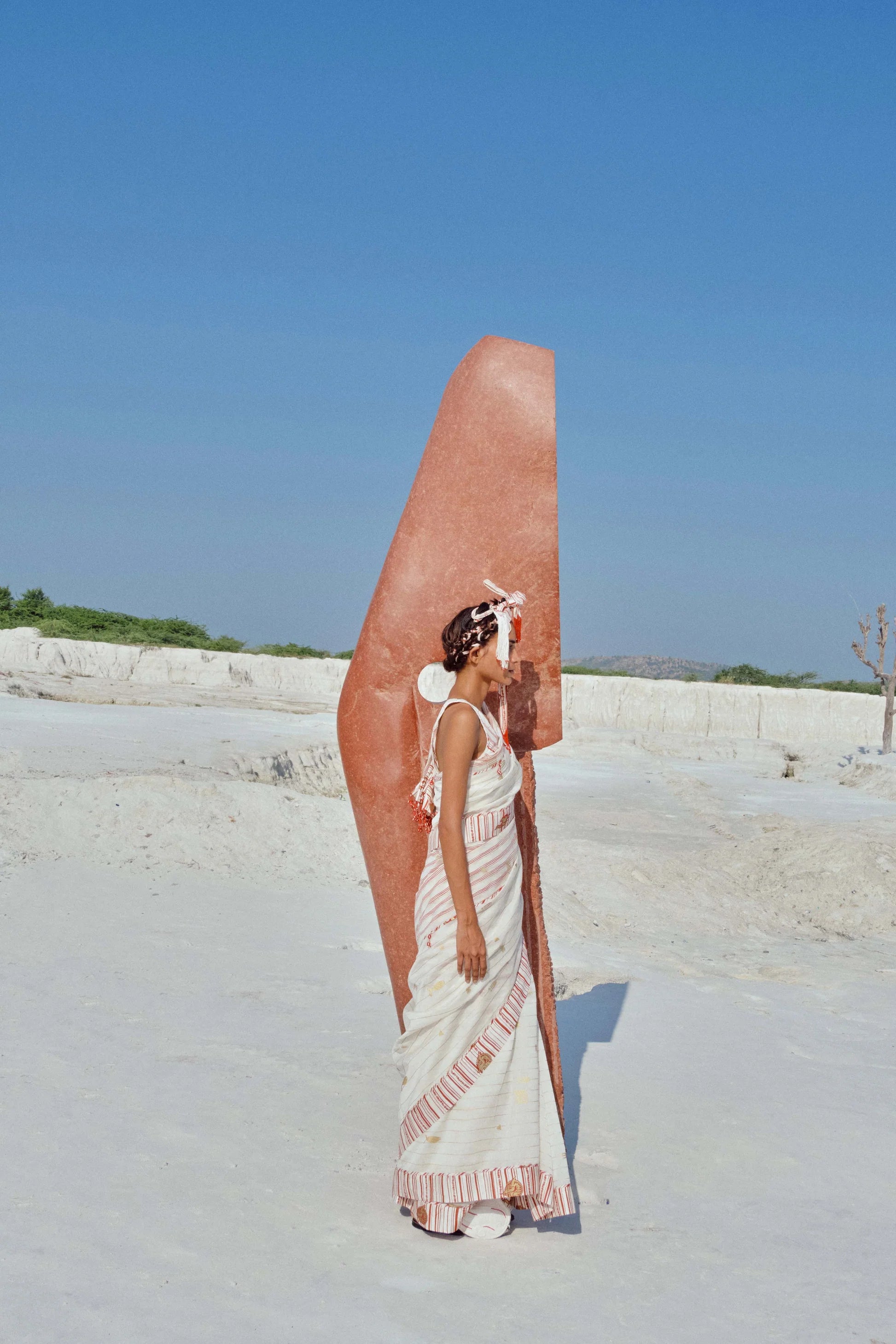 The Hara Cotton Silk Saree is a half-and-half hand-screen-printed cotton silk drape that reflects timeless grace. Bias binding along the length and borders lends a refined finish, while delicate handmade tassels add an artisanal touch. Light and fluid, it falls effortlessly over the body, offering both comfort and elegance. From the hand-screened print to the carefully finished binding and tassels, every detail speaks of hours of dedicated craftsmanship—making this saree a piece of quiet sophistication, suited for many occasions.